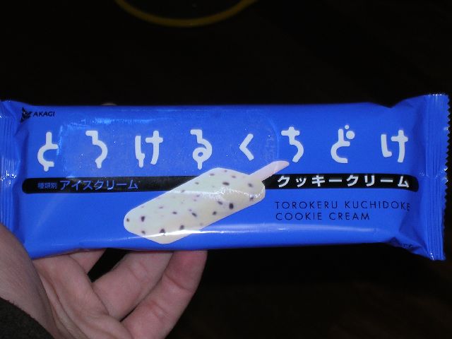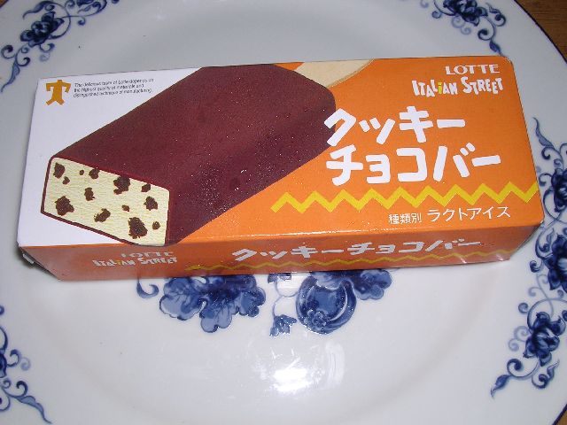 | Cookie-dough ice cream bar from a vending machine at Aioi station |