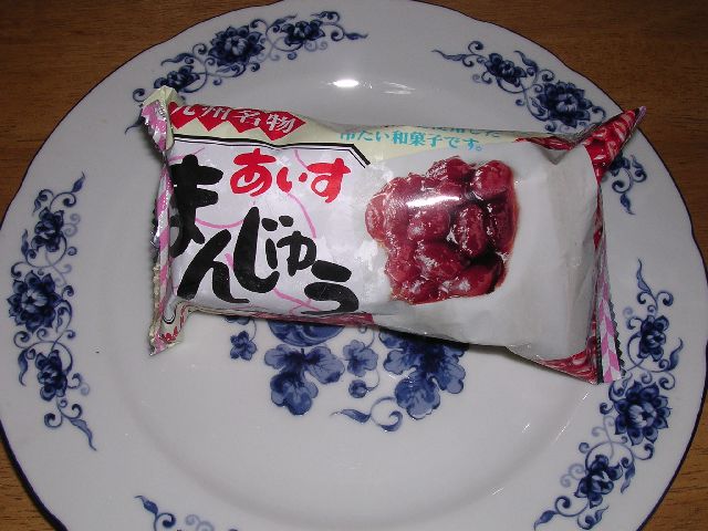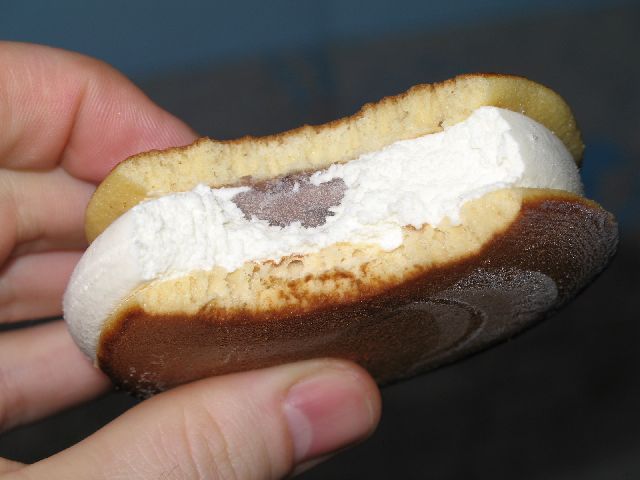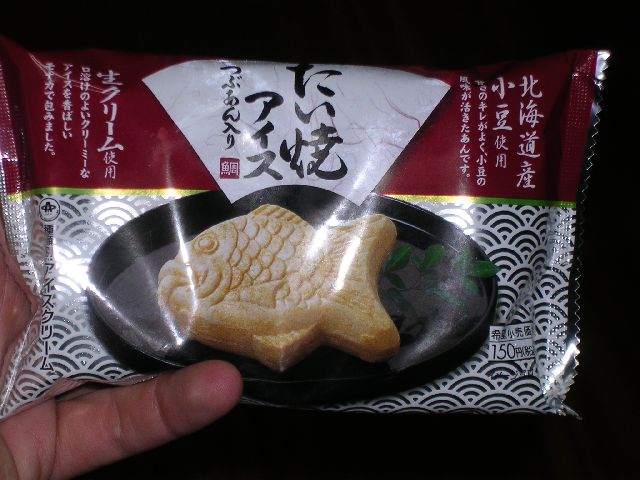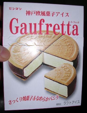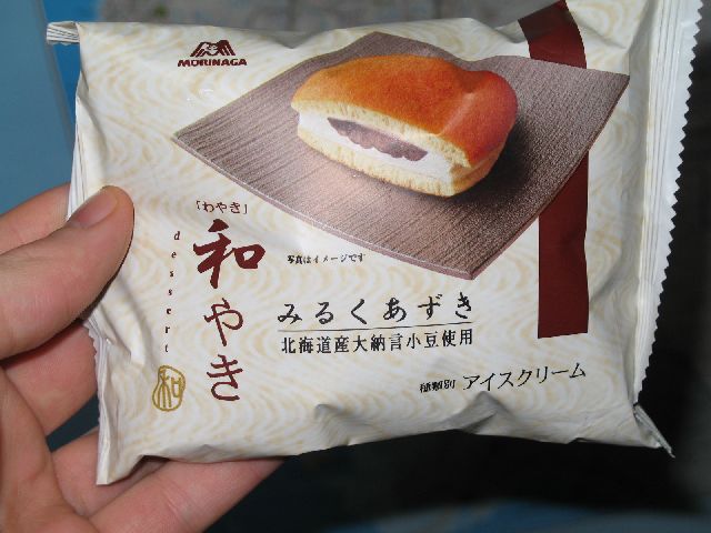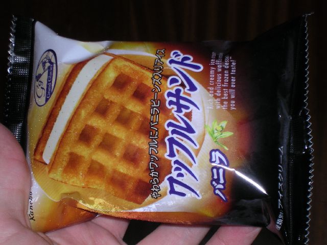 | Waffle filled with red bean (azuki) ice creami from a vending machine at Aioi station |