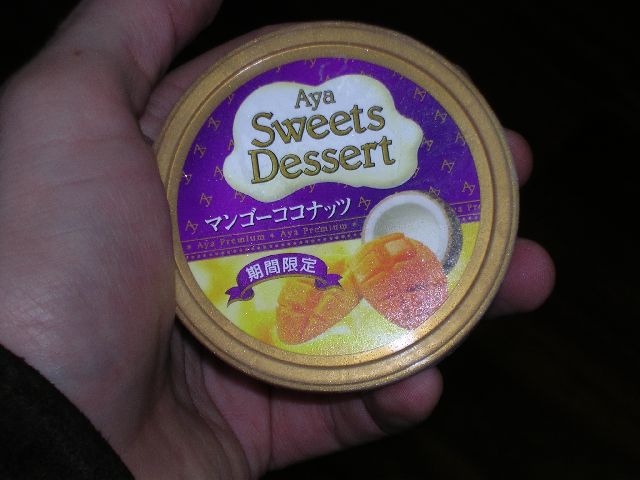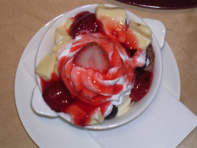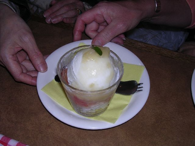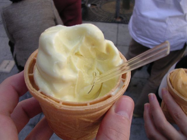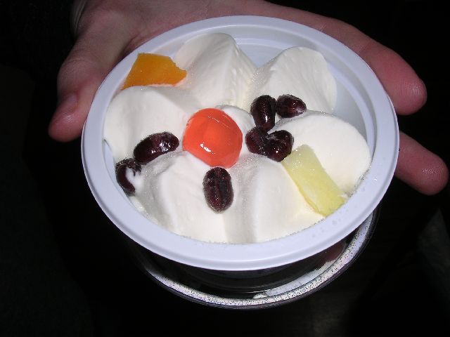 | Soy milk flavor ice cream with fruit, eaten in Suma (near Kobe) with Akemi and our moms. TODO: double check the flavor on this one. |