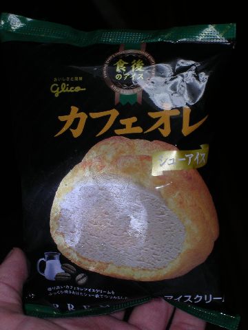 | A cream puff type pastry full of coffee flavor ice cream. |