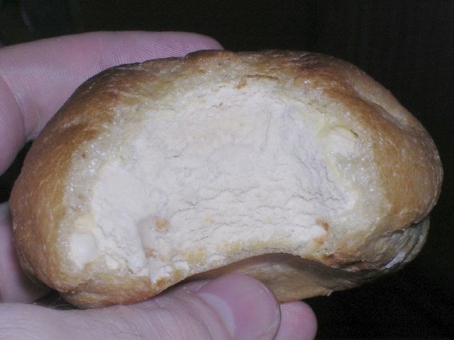 | Action shot. You can see a little of the red bean paste, but there's actually a little more than what shows. |