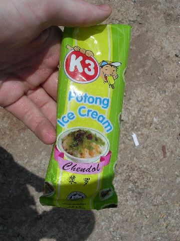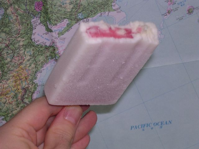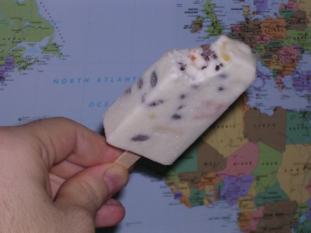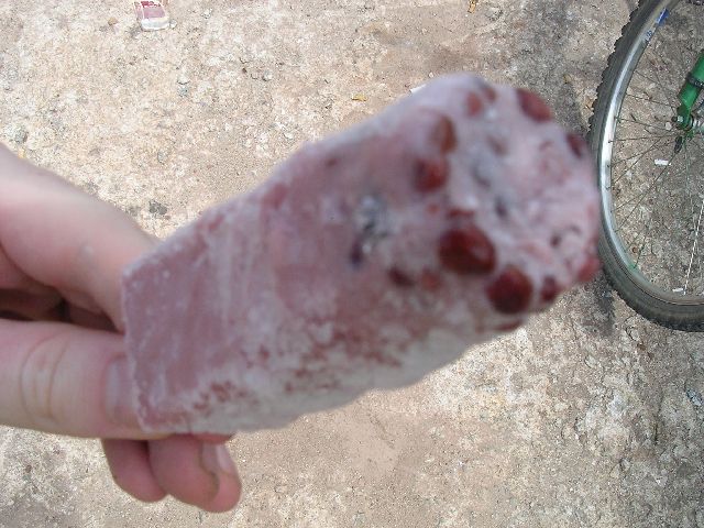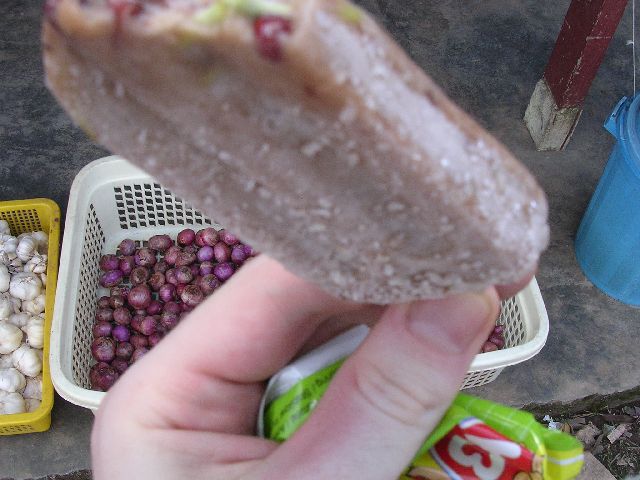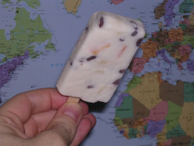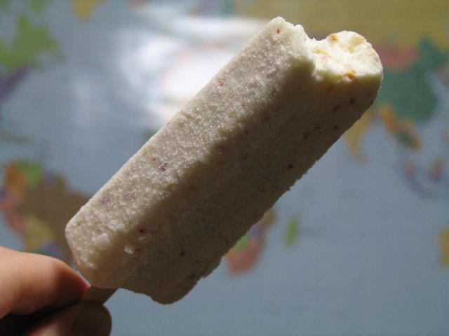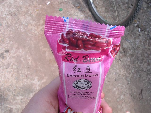 | Malaysia - ice cream bar with beans or fruit (I forget which) and coconut. |