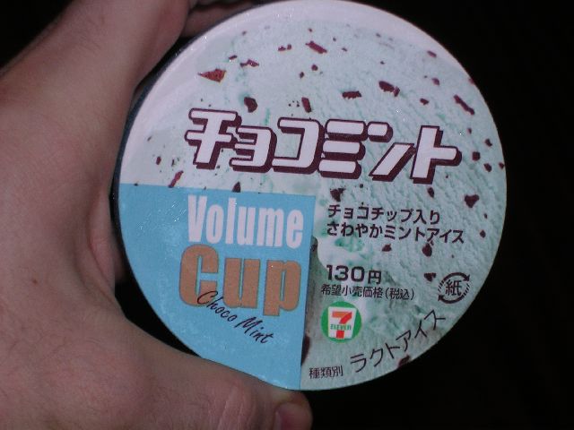 | Chocolate mint ice cream from 7-11. It's just a cheap one, but it was surprisingly good. |