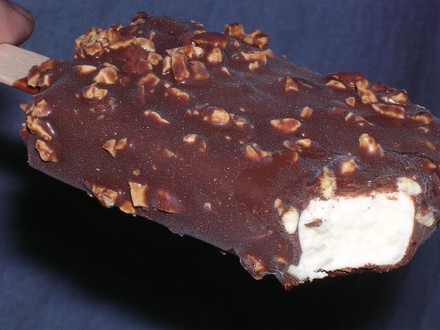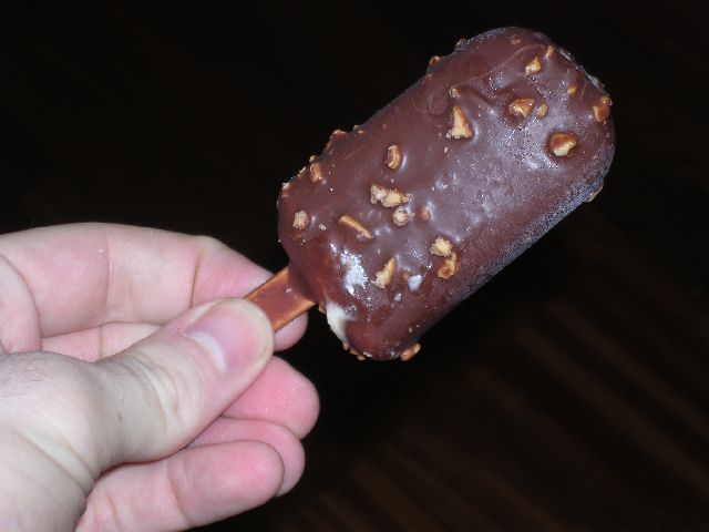 | Chocolate ice cream bar covered in milk chocolate and nuts |