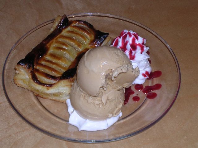 | Haagen Dazs - chai ice cream with a danish, whipped cream, and berry sauce. Usually this comes with vanilla, but Akemi and her friend wanted the chai ice cream instead. |