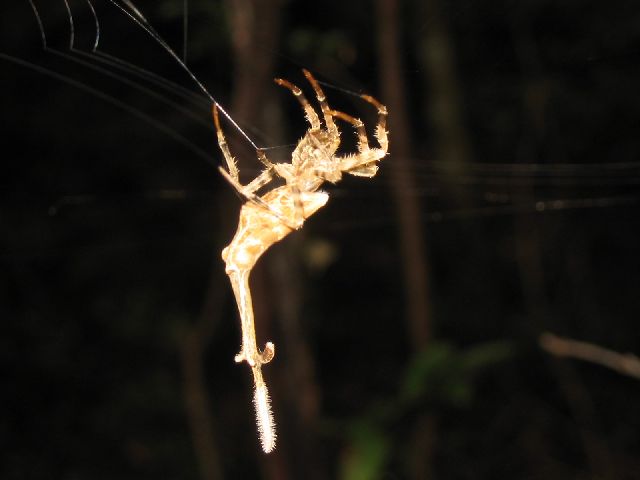 | He found this cool spider while he was there. Notice the tail. Weird, huh? |