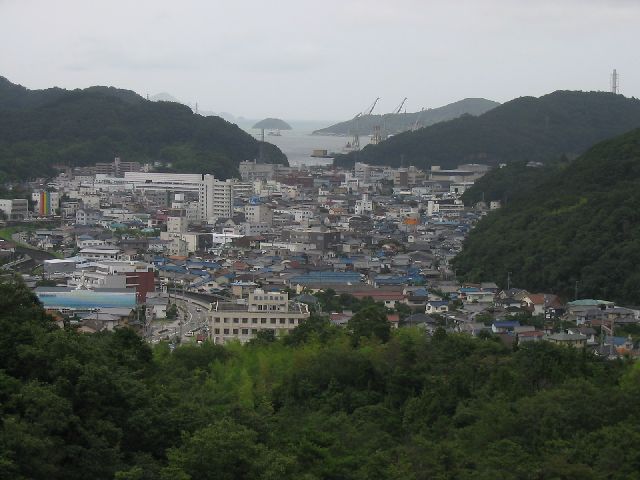 | My buddy David took this from the bamboo forest behind my apartment. From this view, you can see all of Aioi. You get a pretty good idea of how big this place is. Not exactly the sticks, but I wouldn't call it a city, either. It's somewhere in between. |