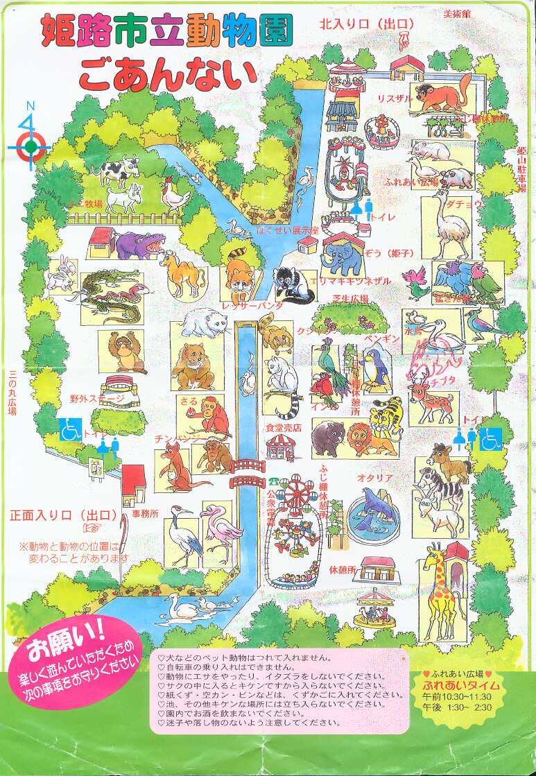 I woke up in Nagasaki and took the train to Himeji. I set out for the famouse Himeji-jo (castle). When I got there, I found the Himeji Zoo nearby and ducked in for a stroll. Here's a map of the zoo. I think it's cute. Himeji Zoo map