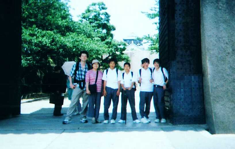 Middle school students and Minami and me at Osaka-jo
